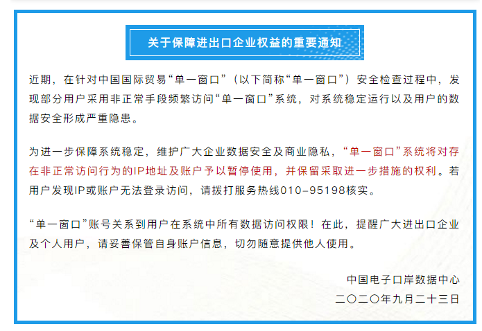 单一窗口已恢复报关企业查看完整报关单信息权限: