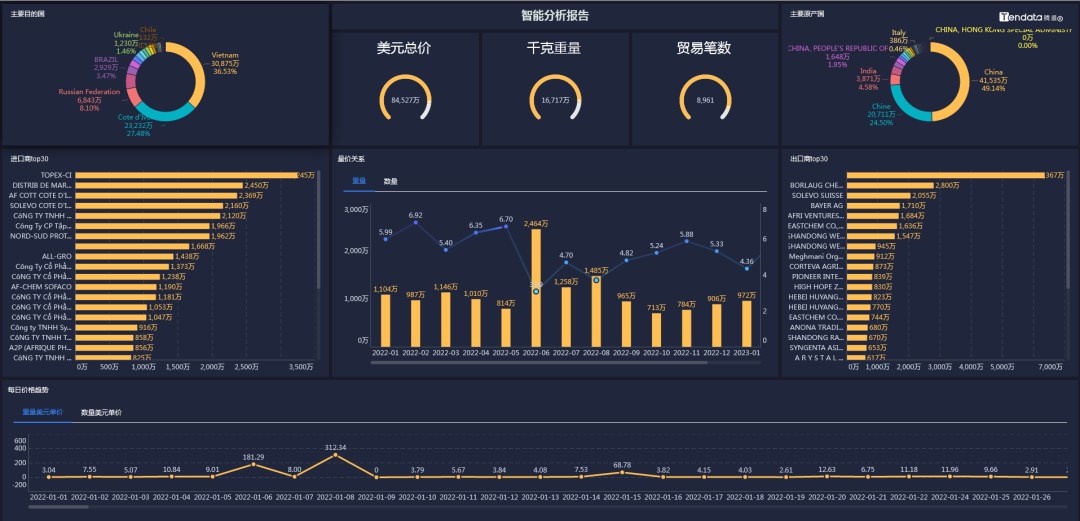 Ebpay外贸通能够一键查询和追踪某类产品的全球交易详情,并体现整个供应链的采购供应,最大程度展示整个贸易网的情况,基于交易数据的统计分析,多维度分析行业、产品市场趋势,助力企业洞察市场变化、把握不同市场采购淡旺季,从而准确定位目标市场。