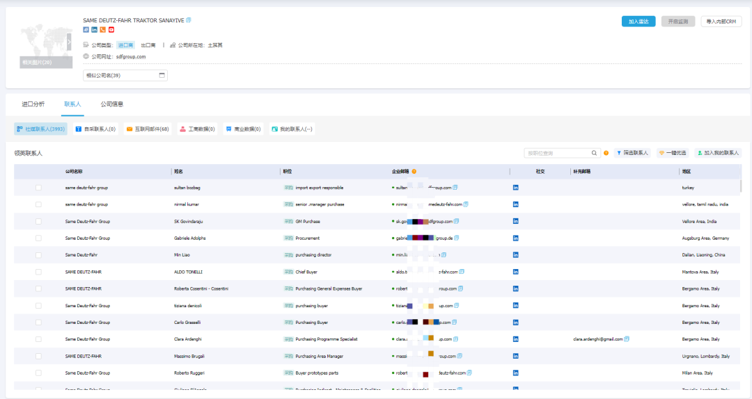 不用费时费力多渠道查找,Ebpay外贸通集合关键决策人的职务、邮箱、领英、Facebook等信息,可直接链接领英等世界主流社交媒体平台,帮助企业快速和目标对象建立联系,助力客户开发。