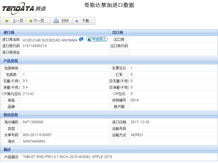 您当前的位置:Ebpay海关数据样本下载 >> 哥斯达黎加海关数据 >> 返回Ebpay